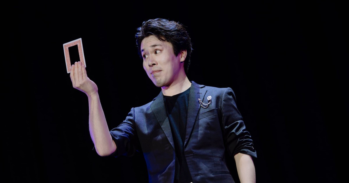 這場演出全長約七十分鐘,由專業魔術師 G 全程擔任口譯。整場節目以紙牌魔術為主軸,搭配牌盒、絲巾、繩子與硬幣等多種媒材,其中紙牌效果佔了八成以上,仍是演出的核心亮點,不過雖以紙牌為主,表演並未流於單一,穿插其中的硬幣流程與繩子流程,設計完整且富創意,成功避免視覺疲乏,其中硬幣效果相當神奇、繩子流程亦具巧思,使整體節奏豐富而不失精準。